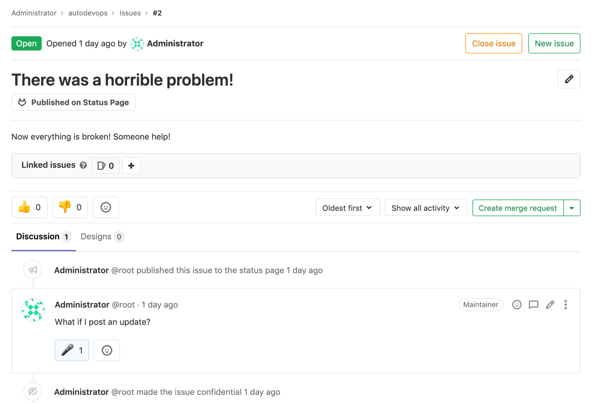 如果您 将已发布的事件设为机密, GitLab 会将其从您的 GitLab 状态页面网站中取消发布。