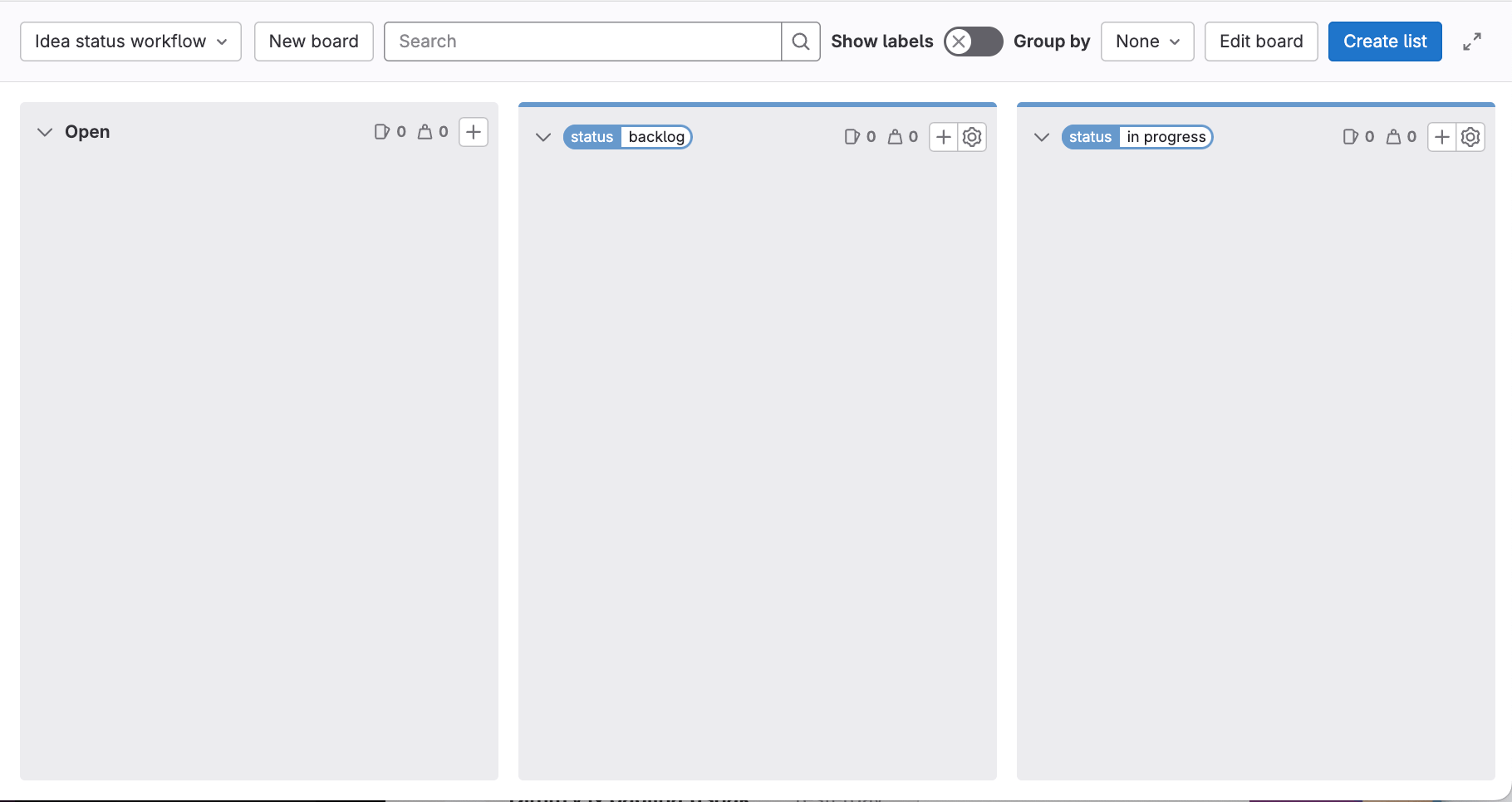 目前,您看板中的列表应该是空的。接下来,您将用一些 issue 填充它们。