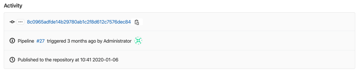 您可以查看哪个流水线发布了该包,以及触发它的提交和用户。但是,历史记录仅限于给定包的五次更新。