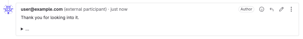 这会在问题或工单上创建新评论,并显示外部参与者的电子邮件地址,而不是 GitLab 用户名。